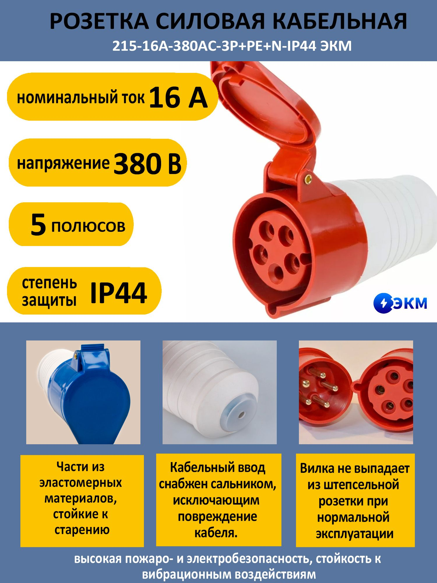 Силовой разъем предназначен для эксплуатации в одно- и трехфазных сетях для подключения бытового и промышленного оборудования к электросети. Розеточные узлы силового разъема изготовлены из фосфористой бронзы. Для защиты от коррозии все элементы кабельной розетки покрыты никелем. Винты, применяемые для механических и электрических соединений, предохранены от самоотвинчивания . Давление, оказываемое контактными гнездами на контактные вилки, препятствует легкому вводу и выводу вилки. Степень защиты силового разъема - IP44 - позволяет эксплуатировать устройство во влажной и загрязненной пылью среде. Корпус и изолирующие детали переносной кабельной розетки выполнены из термостойкого материала, не поддерживающего горение. С помощью переносного разъема удобно организовывать временное электропитание различного оборудования, например, на строительных площадках. Переносные вилки и розетки монтируются на кабель.