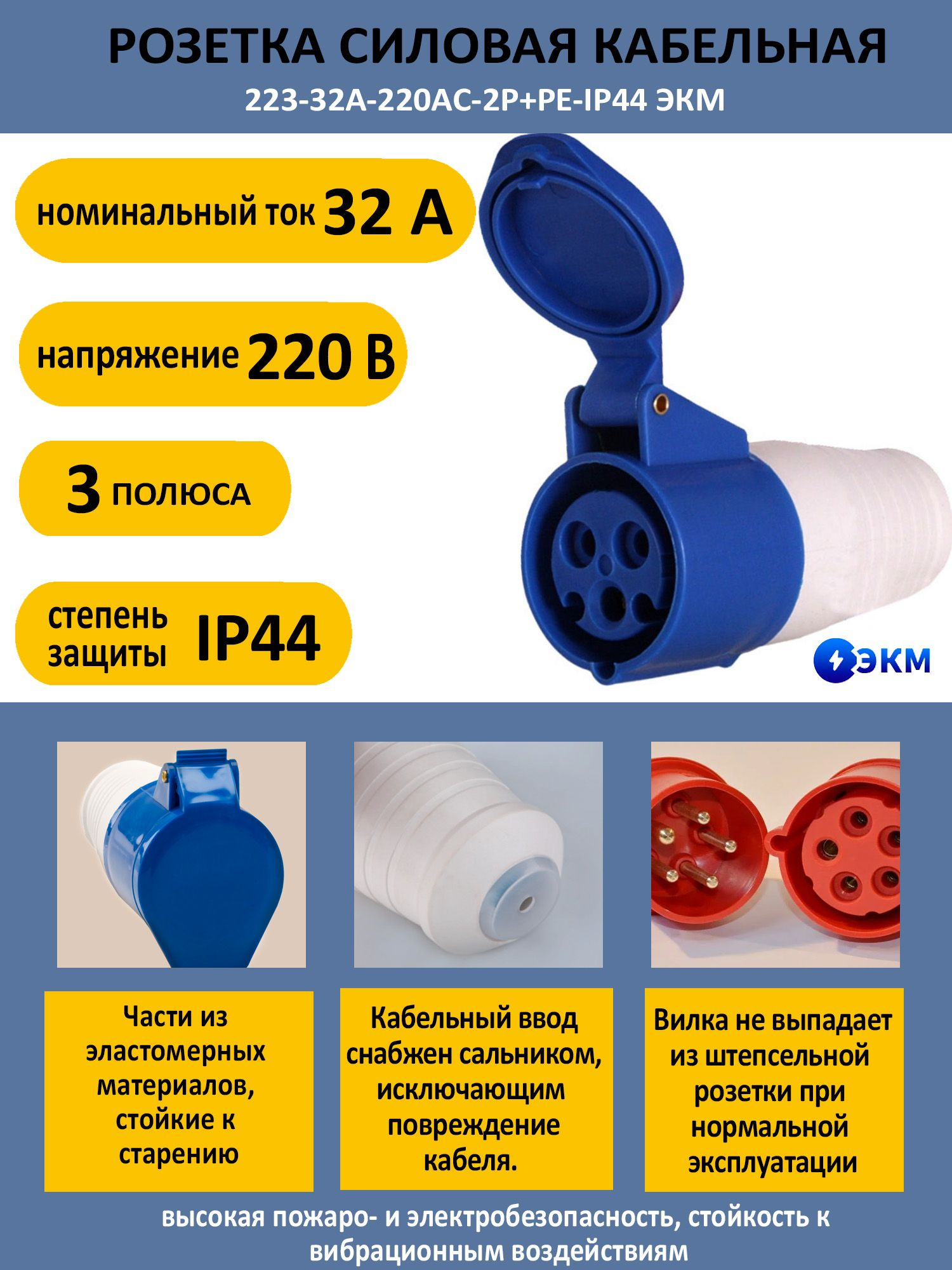 Силовой разъем предназначен для эксплуатации в одно- и трехфазных сетях для подключения бытового и промышленного оборудования к электросети. Розеточные узлы силового разъема изготовлены из фосфористой бронзы. Для защиты от коррозии все элементы кабельной розетки покрыты никелем. Винты, применяемые для механических и электрических соединений, предохранены от самоотвинчивания . Давление, оказываемое контактными гнездами на контактные вилки, препятствует легкому вводу и выводу вилки. Степень защиты силового разъема - IP44 - позволяет эксплуатировать устройство во влажной и загрязненной пылью среде. Корпус и изолирующие детали переносной кабельной розетки выполнены из термостойкого материала, не поддерживающего горение. С помощью переносного разъема удобно организовывать временное электропитание различного оборудования, например, на строительных площадках. Переносные вилки и розетки монтируются на кабель.