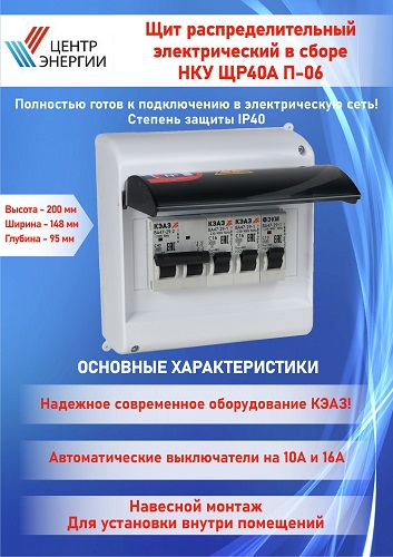 Щит распределительный электрический в сборе НКУ ЩР40А П-06 ЭКМ (1х2С40, 1х1С10, 2х1С16)_06