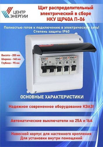 Щит распределительный электрический в сборе НКУ ЩР40А П-06 ЭКМ (1Х2С40, 2х1С16, 2х1С25)_07