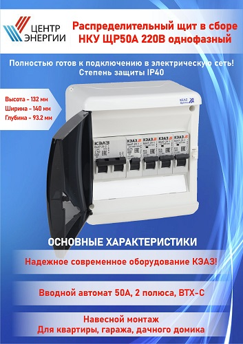 Щит распределительный в сборе (электрощиток) НКУ ЩР50А-UNK-06 для квартиры, дачи, гаража, бани (2С50,1В10,2хВ16,1В25) пп16