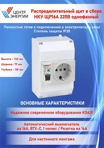 однополюсный автоматический выключатель на 16А (ВТХ-С)-1шт.;