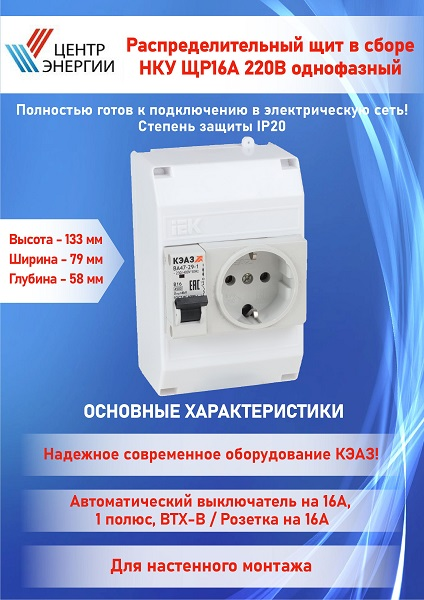 однополюсный автоматический выключатель на 16А (ВТХ-В)-1шт.;