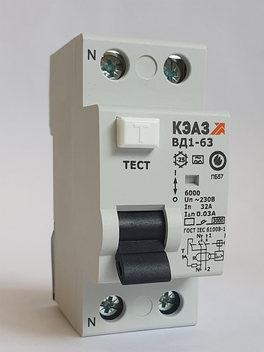 Однофазное устройство защитного отключения ВД1-63-2232-А на номинальный ток 32А предназначено для применения в электрических сетях переменного тока с частотой 50Гц и рабочим напряжением 230В для защиты людей от поражения электрическим током при неисправностях электрооборудования или при непреднамеренном контакте с открытыми проводящими частями электроустановок, а также для предотвращения возгораний и пожаров, возникающих вследствие протекания токов утечки и замыканий на землю. Устройство защитного отключения ВД1-63-2232-А реагирует на возникающие внезапно или медленно возрастающие переменный дифференциальный ток и пульсирующий постоянный ток. Это приборы, в которых используются выпрямители и импульсные блоки питания: компьютеры, стиральные машинки, телевизоры, посудомойки, микроволновки. УЗО срабатывает при токе утечки 30мА. Электромеханическая схема УЗО обеспечивает надежную защиту жизни человека и имущества от пожара даже при обрыве нулевого проводника.