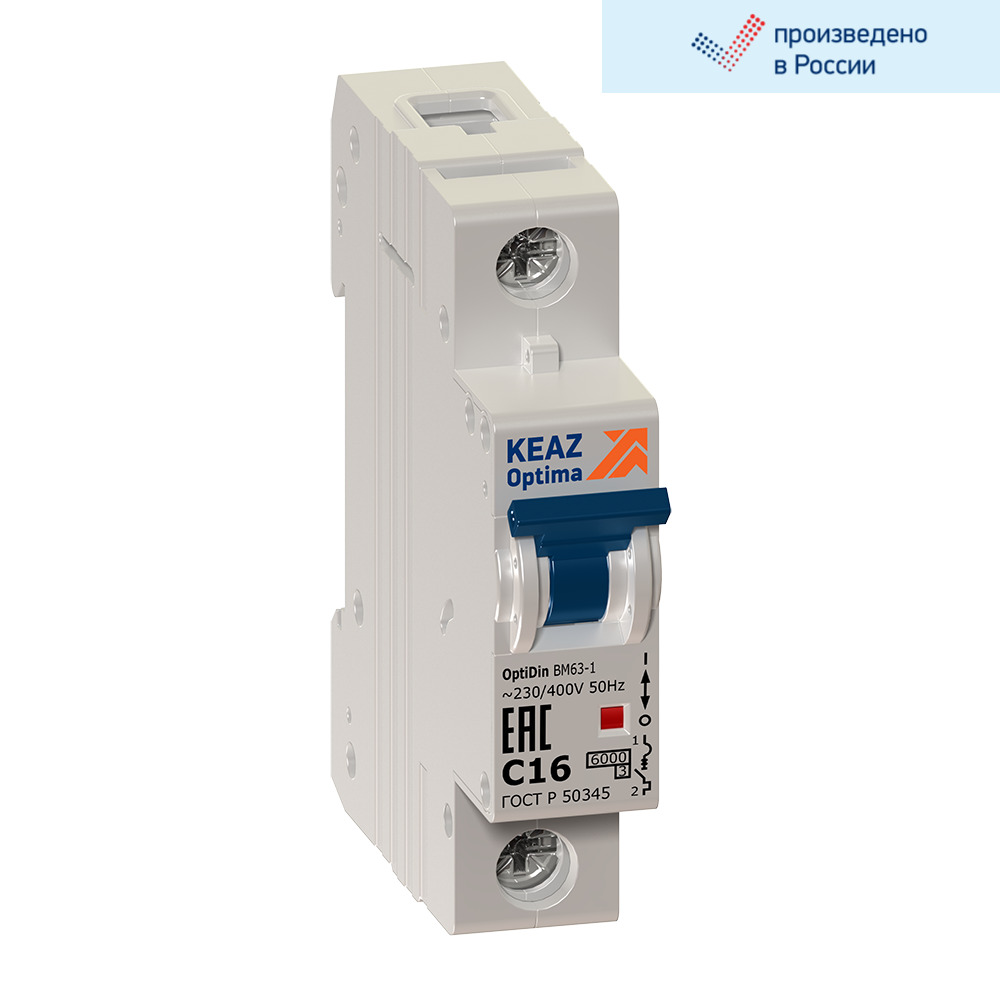 Завод КЭАЗ представляет модульный автоматический однополюсный выключатель переменного тока с предельной коммутационной способностью при переменном токе 4.5 кА на номинальный ток 16А. Корпус выключателя выполнен из прочного пластика, обладающего стойкостью к воспламенению, степень защиты - IP 20. Время-токовая характеристика – С, порядок кратности номинальному току, при котором срабатывает расцепитель, 5-10*In. С такой характеристикой автоматы устанавливают в защите двигателя с не большими пусковыми токами, для освещения, в офисах, домах, квартирах, подсобных помещениях. Электрический пробка автомат 16ампер от производителя КЭАЗ - это надежное устройство для обеспечения безопасности и стабильного электроснабжения в вашем доме. Этот однофазный автомат является эталоном качества, предоставляя надежную защиту от перегрузок и короткого замыкания.<br/><br/>С механическим переключателем и однополюсной конструкцией, этот автоматический выключатель обеспечивает эффективное управление электрическими нагрузками и защиту вашего электрооборудования от повреждений. Он также может использоваться в качестве предохранителя для защиты системы питания и выключения массы. Установка этого электрического устройства обеспечивает надежное и стабильное электропитание вашего дома, предотвращая возможные аварийные ситуации. Совместим со всеми видами щетчиков, вводных автоматов, ВДТ, АВДТ И УЗО.<br/><br/>Безопасность вашего электрического оборудования - наш приоритет. Наш автоматический рубильник с номинальным током 16А и одним полюсом обеспечивает надежную защиту от перегрузок и коротких замыканий.<br/><br/>Является Российским аналогом таких брендов как: EKF BASIC, DEKraft, IEK, Schneider Electric, Legrand, ABB.<br/><br/>В нашем магазине "Центр Энергии" вы можете ознакомиться с широким ассортиментом электро товаров на любой вкус - узо, дифф автоматы, электровыключатели, прочие автоматы для электрики, а так же большой выбор щитов электрических в сборе.