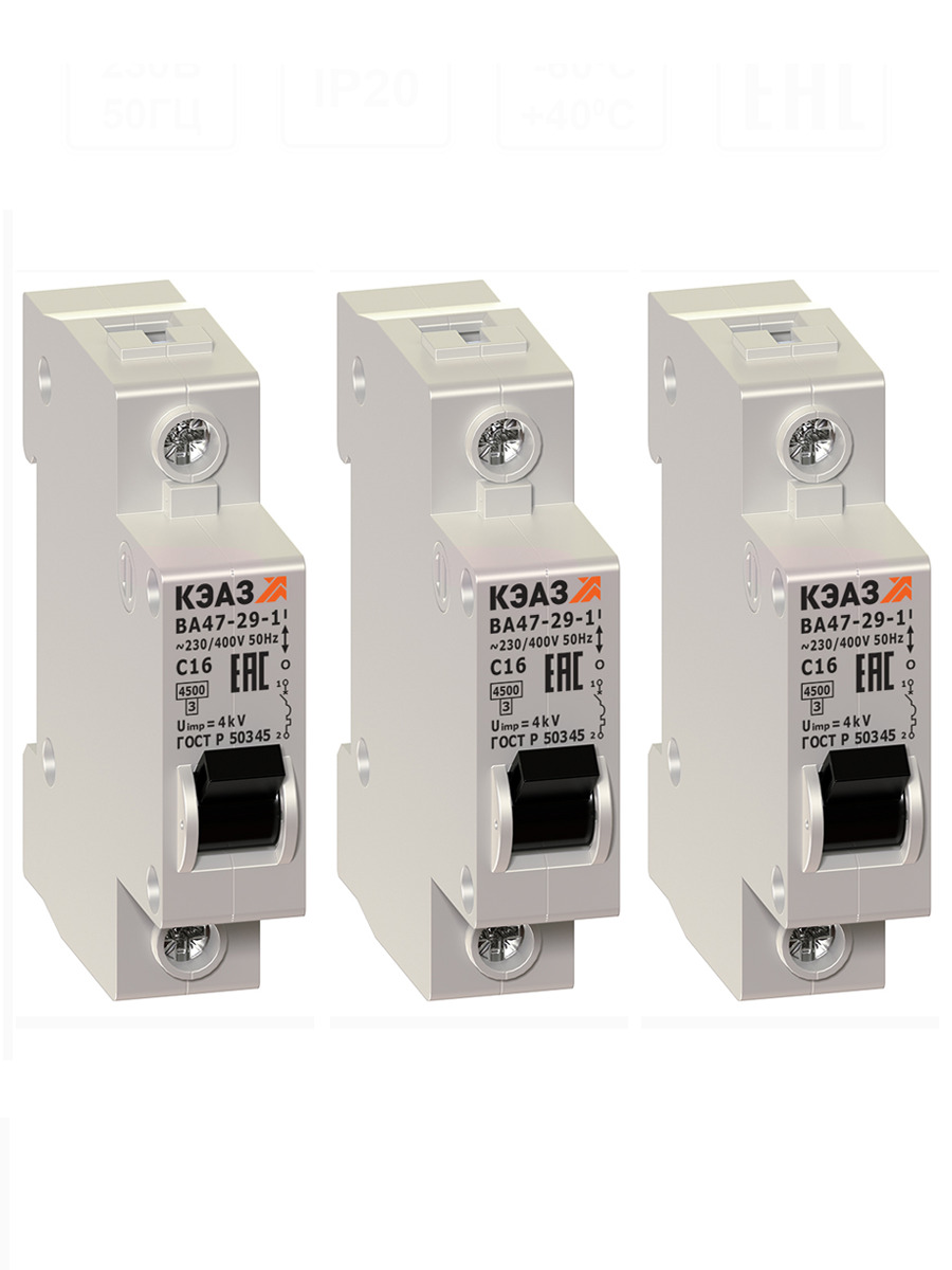Завод КЭАЗ представляет модульный автоматический однополюсный выключатель переменного тока с предельной коммутационной способностью при переменном токе 4.5 кА на номинальный ток 16А. Корпус выключателя выполнен из прочного пластика, обладающего стойкостью к воспламенению, степень защиты - IP 20. Время-токовая характеристика – С, порядок кратности номинальному току, при котором срабатывает расцепитель, 5-10*In. С такой характеристикой автоматы устанавливают в защите двигателя с не большими пусковыми токами, для освещения, в офисах, домах, квартирах, подсобных помещениях. Электрический пробка автомат 16ампер от производителя КЭАЗ - это надежное устройство для обеспечения безопасности и стабильного электроснабжения в вашем доме. Этот однофазный автомат является эталоном качества, предоставляя надежную защиту от перегрузок и короткого замыкания.