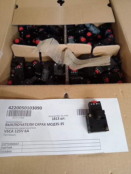 ВЫКЛЮЧАТЕЛИ САРАХ МОД35-35 VSСА 125V 6А (неликвидное ТМЦ) - 1813 шт.