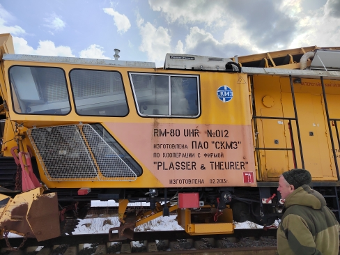 Путевая щебнеочистительная машина RM-80 (UHR), 2013 г.в., заводской № 12. Адрес: Ленинградская обл., Кировский р-н, пгт Мга, территория производственной базы ООО «Проммаш», расположенной рядом с ж/д станцией "Мга" Октябрьской ж.д.