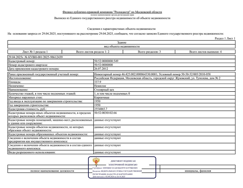 Адрес: Российская Федерация, Московская область, г.о. Жуковский, г. Жуковский, ул. Туполева, участок № 2.