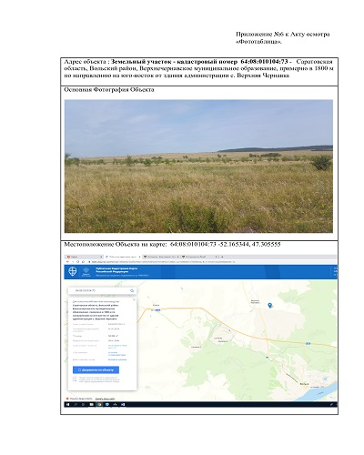 Земельный участок, общая площадь: 53900 кв.м. Адрес: Саратовская обл., Вольский р-н, примерно 1800 м по направлению юго-восток от здания администрации с. Верхняя Чернавка. Кадастровый номер: 64:08:010104:73