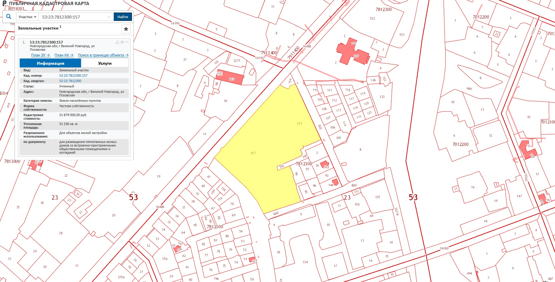Кадастровый номер: 53:23:7812300:157