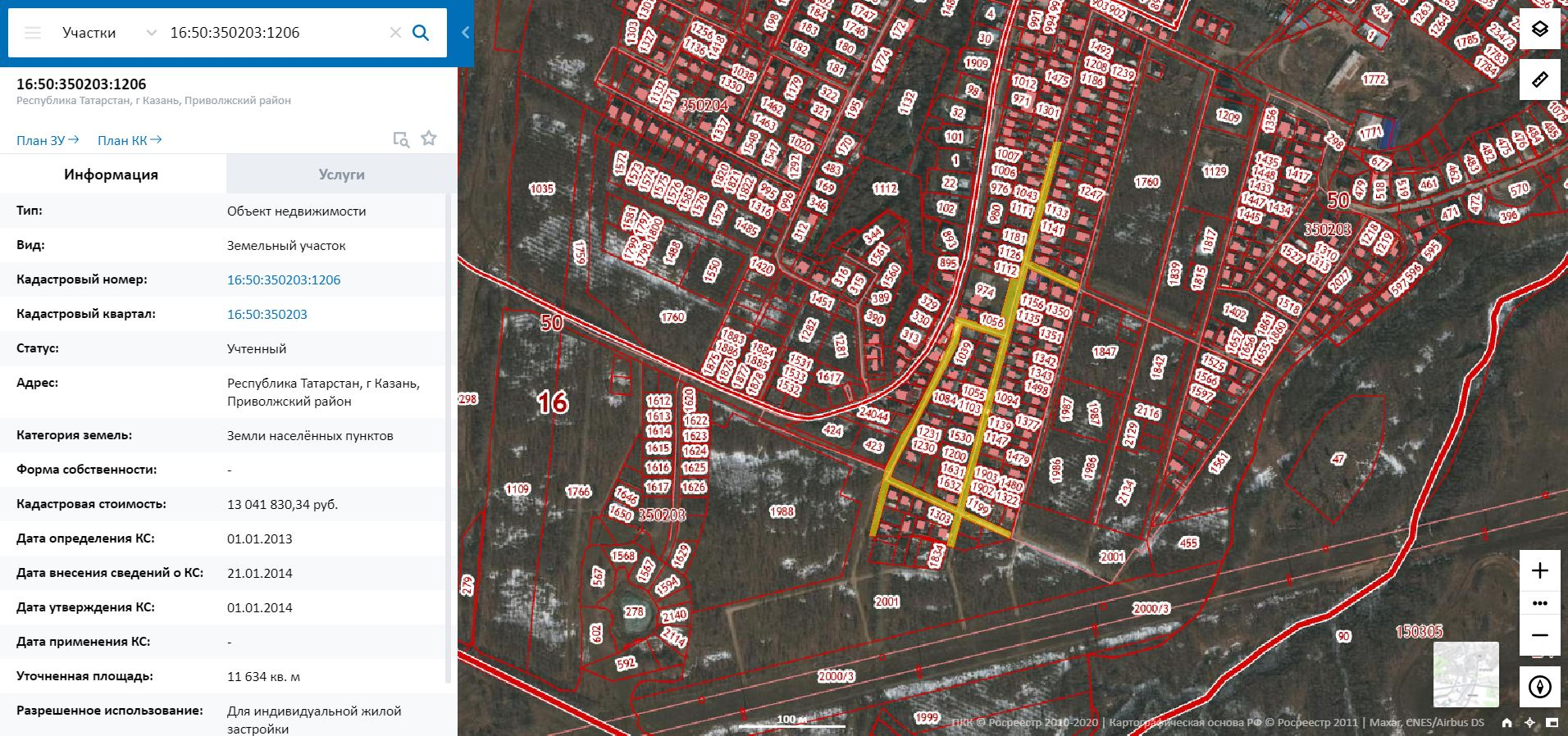Земельный участок с кадастровым номером 16:50:350203:1206, площадью 11 634 кв.м.