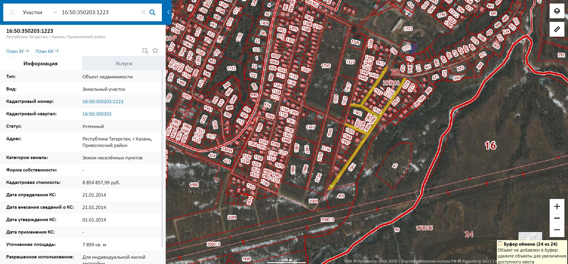 Земельный участок с кадастровым номером 16:50:350203:1223, площадью 7 899 кв.м.